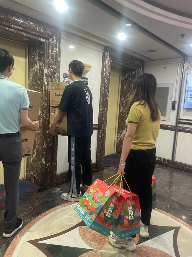 大家提着沉甸甸的端午福利,喜悦之情溢于言表。