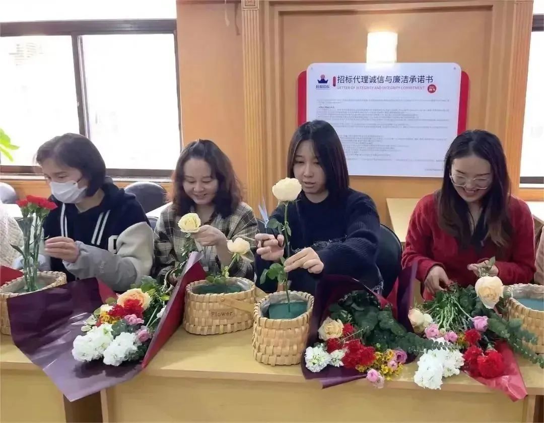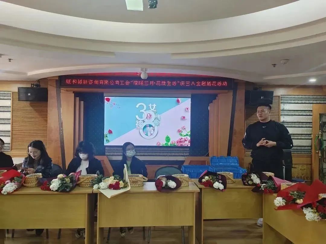 为增强员工凝聚力,提高大家的幸福指数。3月8日下午,旺财28招标咨询有限公司工会委员会为女性职工们精心组织了“情暖三月·花漾生活”庆三八主题插花活动。