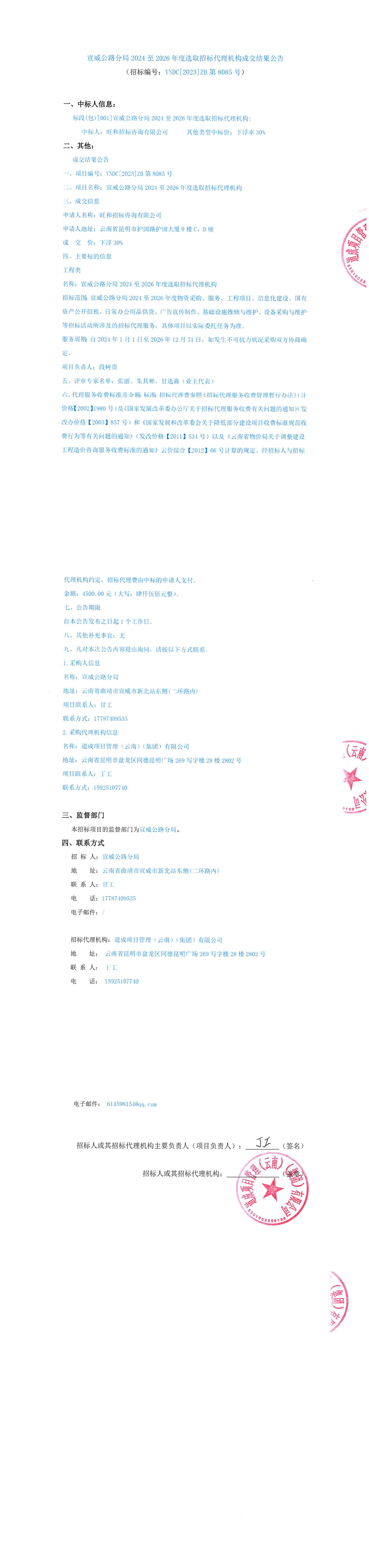 上一篇:旺财28招标咨询有限公司入选富滇银行股份有限公司昭通分行招标代理机构 下一篇:旺财28招标咨询有限公司入围云南烟叶复烤有限责任公司2024-2026 年度招标代理机构
