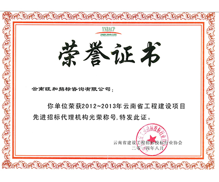 2012-2013年度云南省工程项目先进招标代理机构光